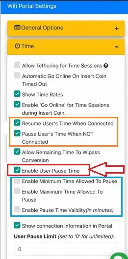 In this way, the owner can configure user pause time option(s) in Piso WiFi Admin Settings.